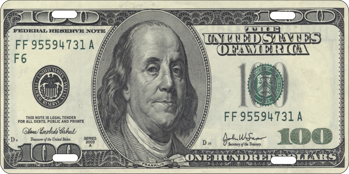 Amazon com: $100 Dollar Bill Photo License Plate : Automotive
