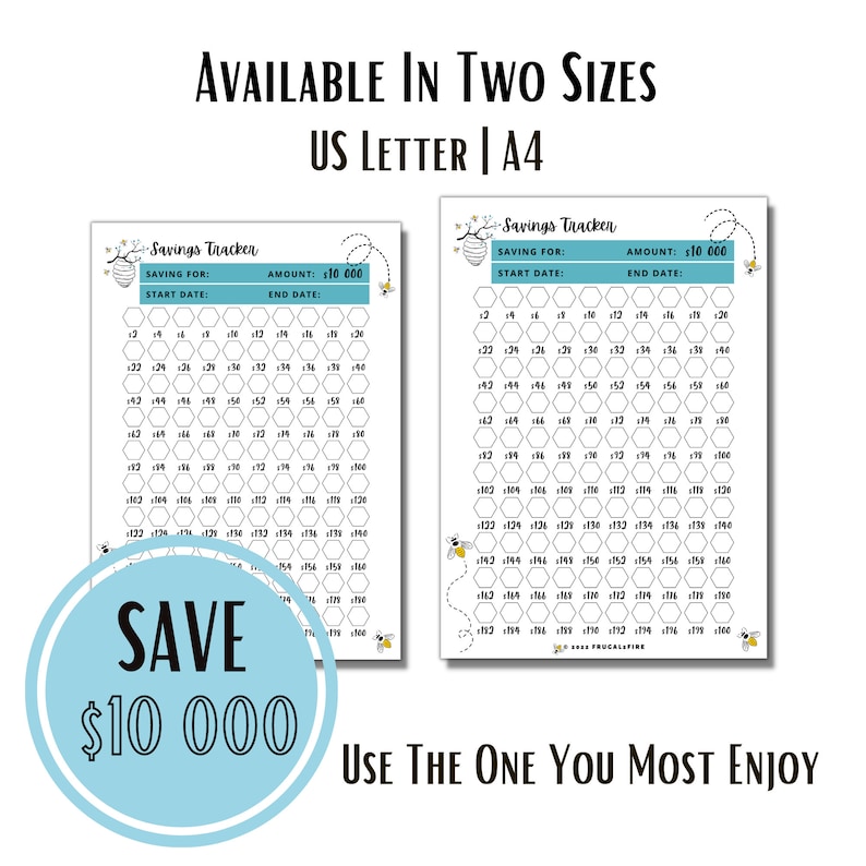 10k in 100 Days Challenge Savings Tracker Printable Saving Goal