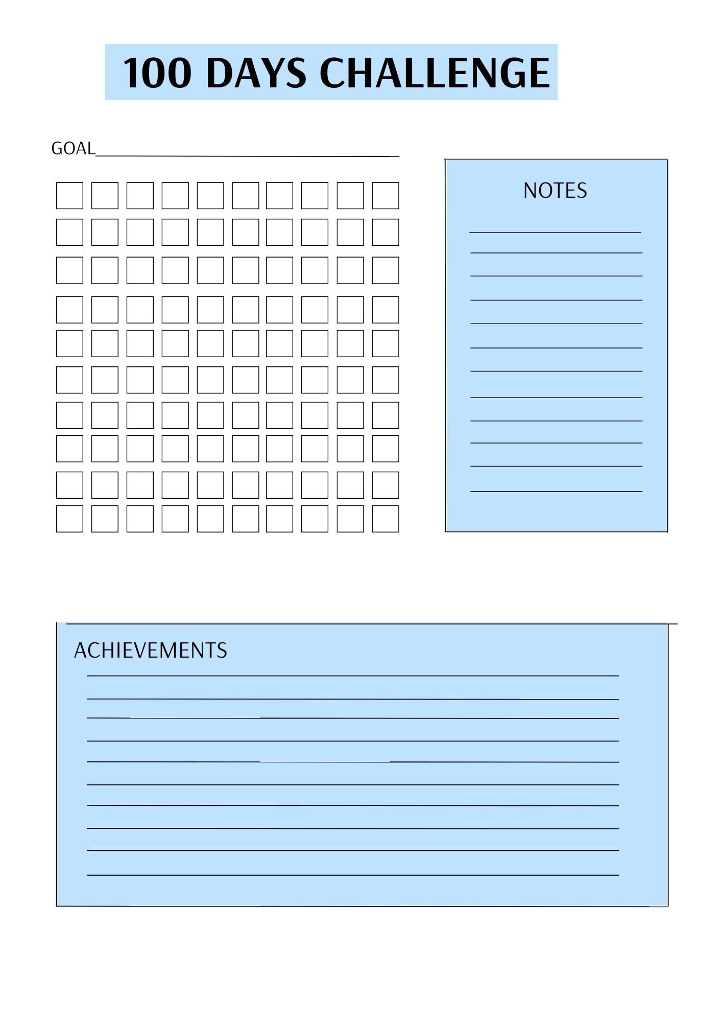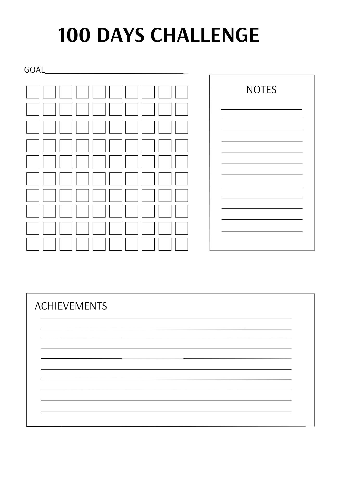 100 Days Challenge Printable