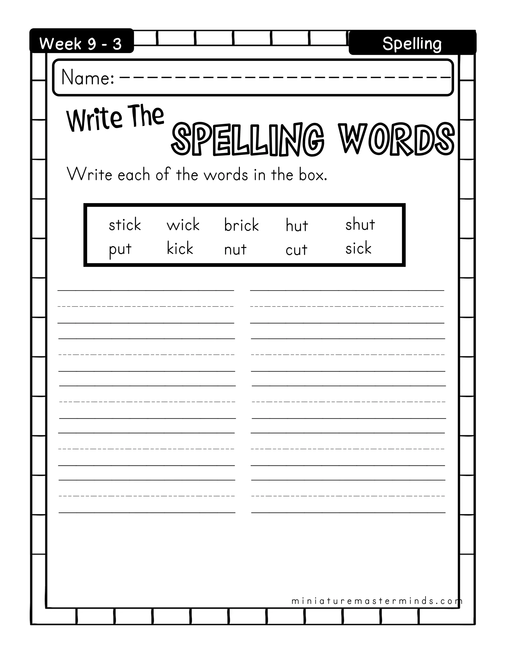 1st Grade Spelling Worksheets Printable Word Lists Weekly Practice