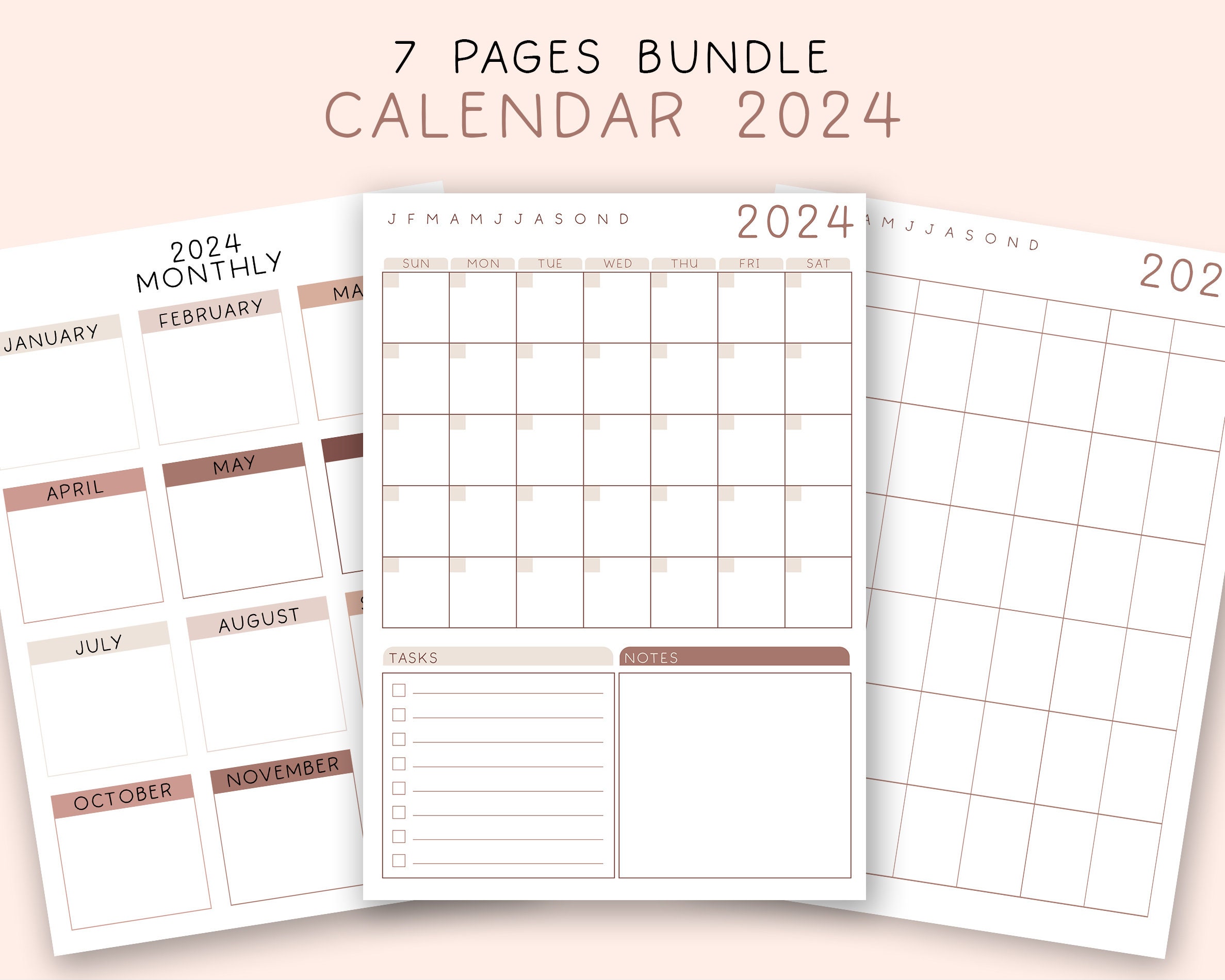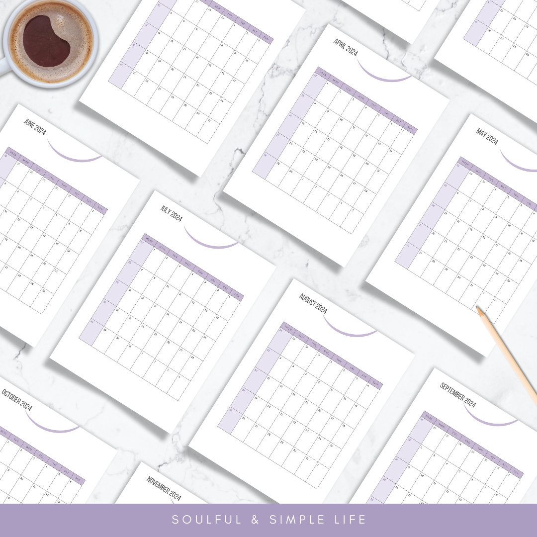 2024 Monthly Calendar Printable Calendar Template Year Etsy