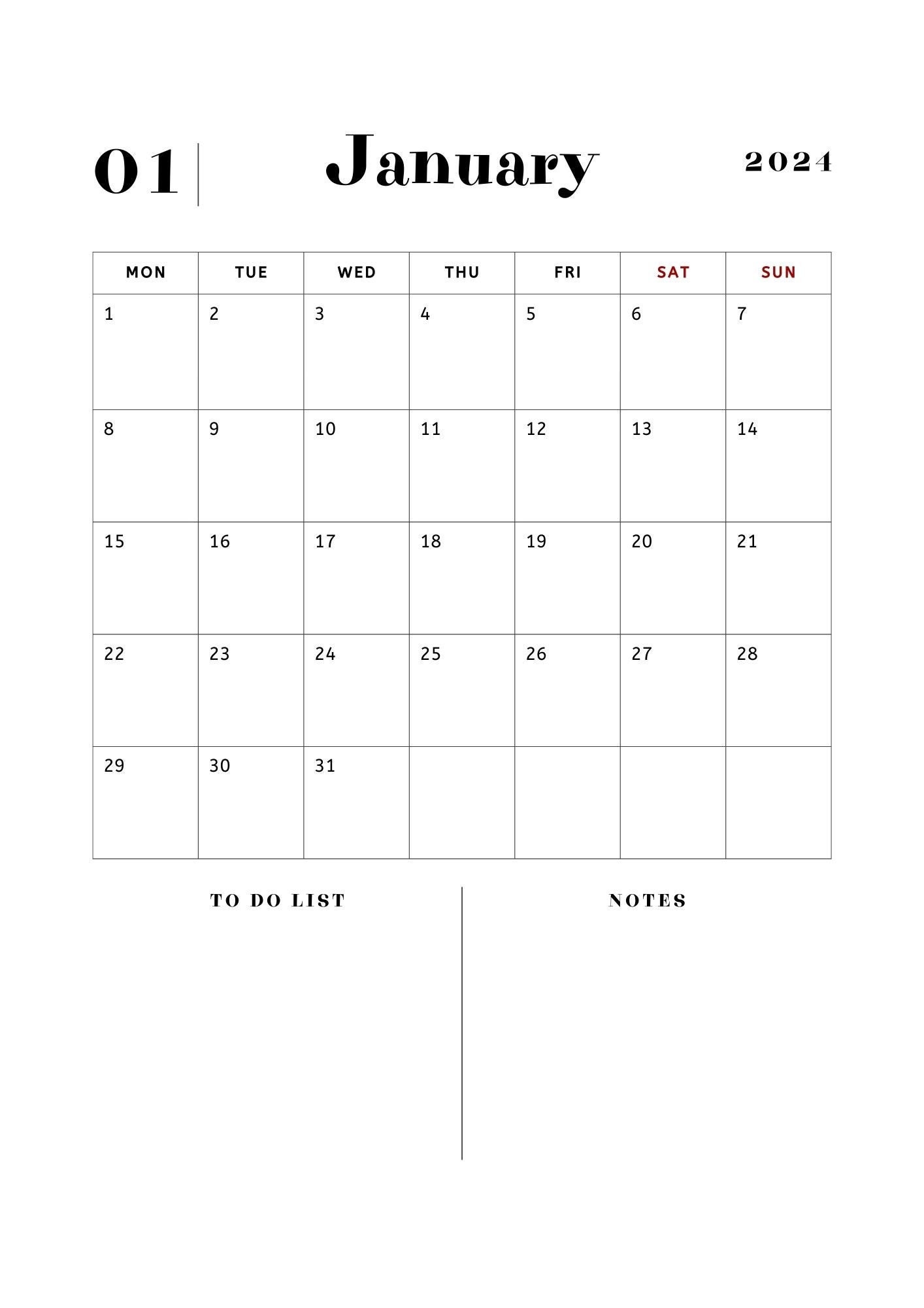 2024 Monthly Calendar Printable Calendar Template Minimalist Calendar