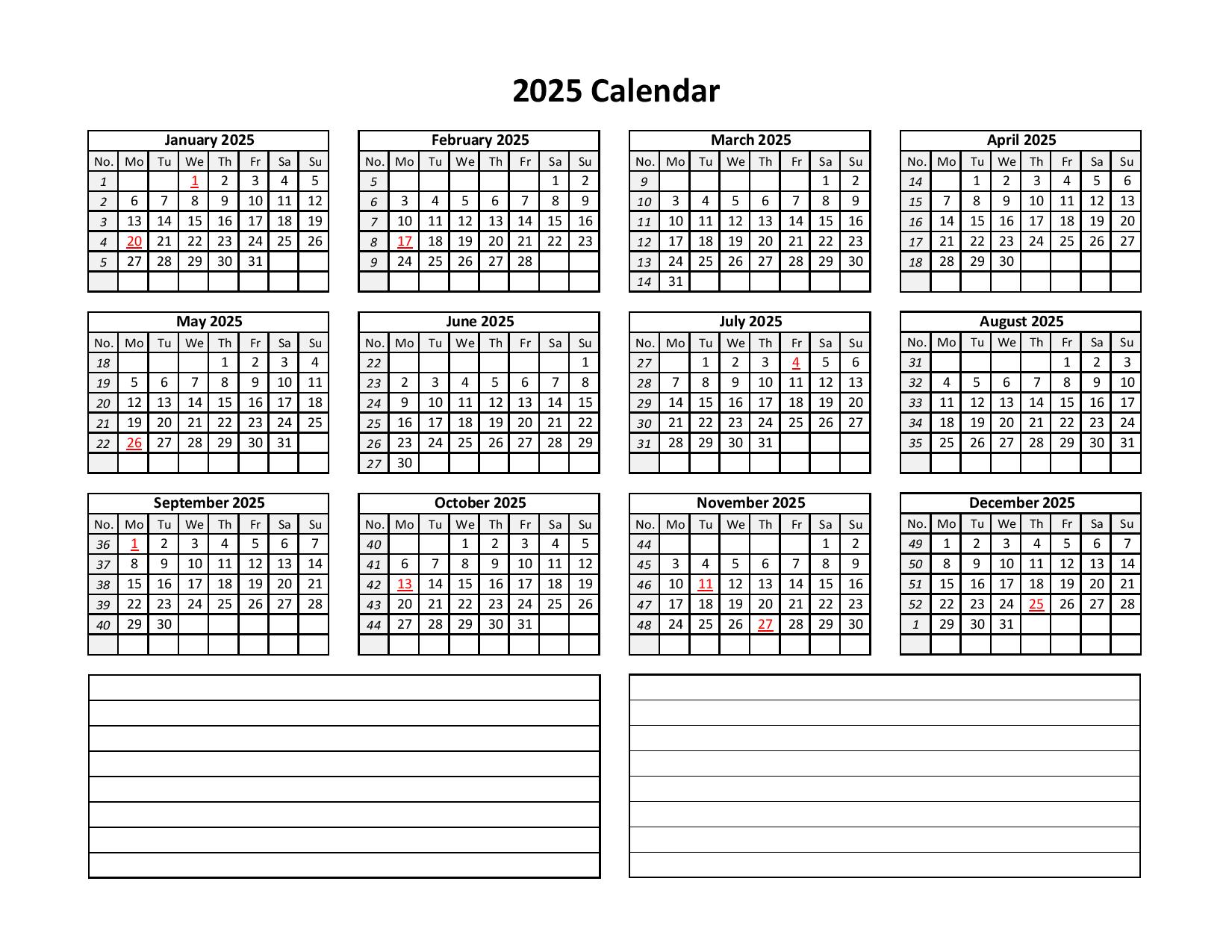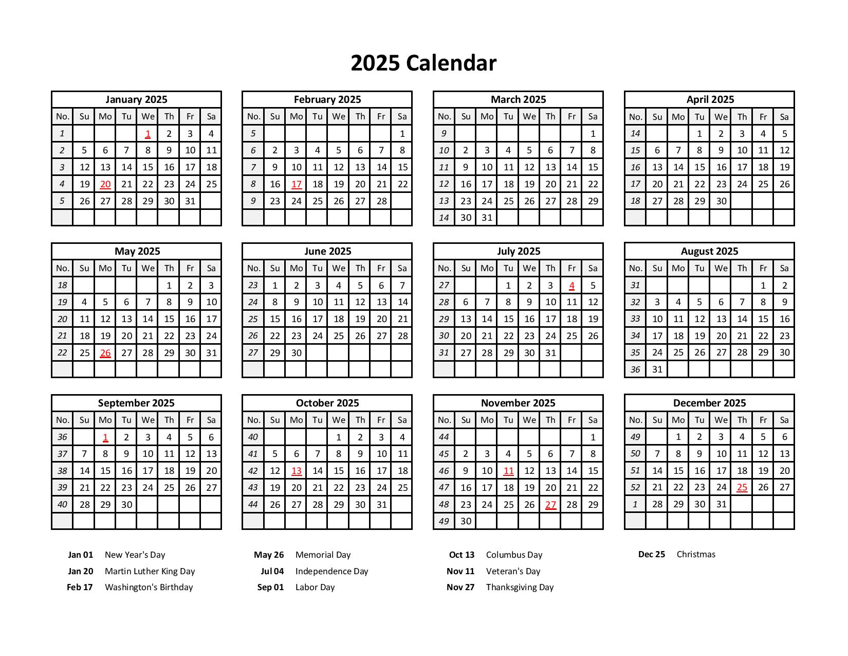 2025 Printable Calendar Template PDF Word Excel Free 2025 Calendar