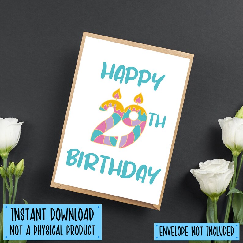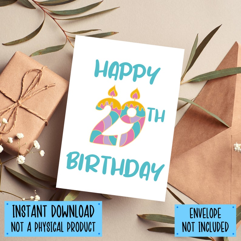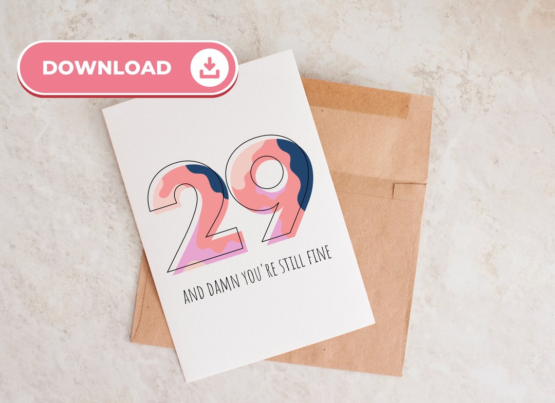 29th Birthday Card Printable Downloadable 29th Birthday Card Etsy