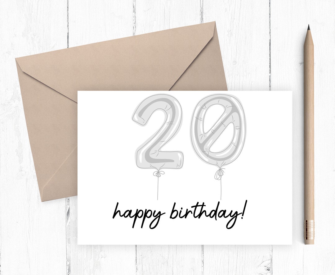 20th Birthday Card Printable 20 Year Old Birthday Card PDF Etsy
