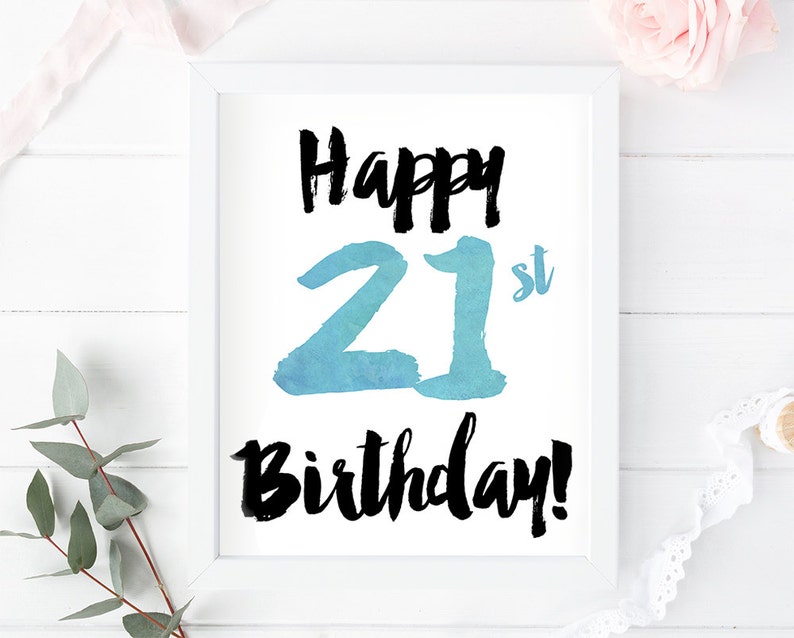 Happy 21st Birthday Print 21st Birthday Gift Birthday Etsy