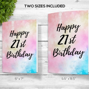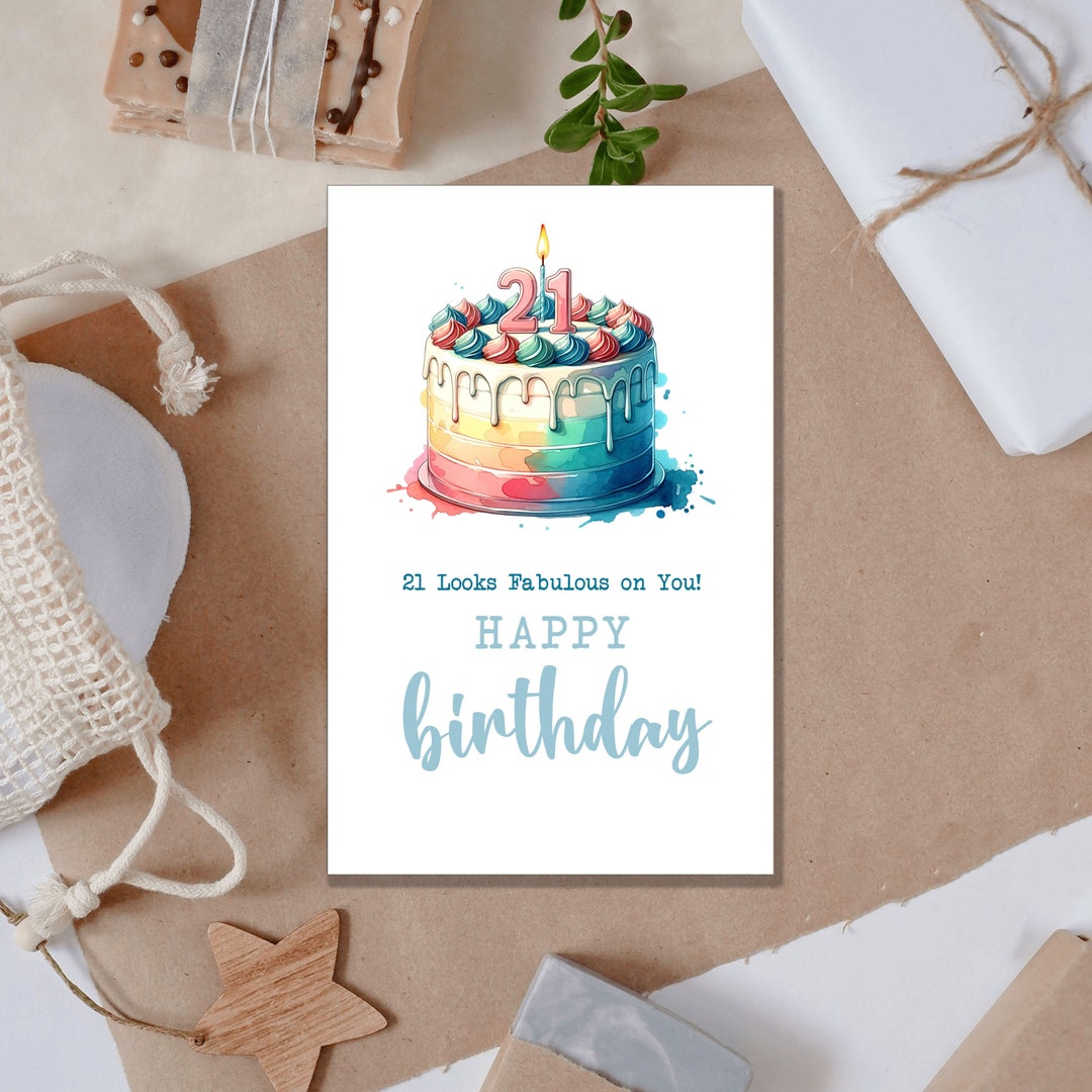 Printable Happy 21st Birthday Card DIY Blank 5x7 Birthday Card Etsy