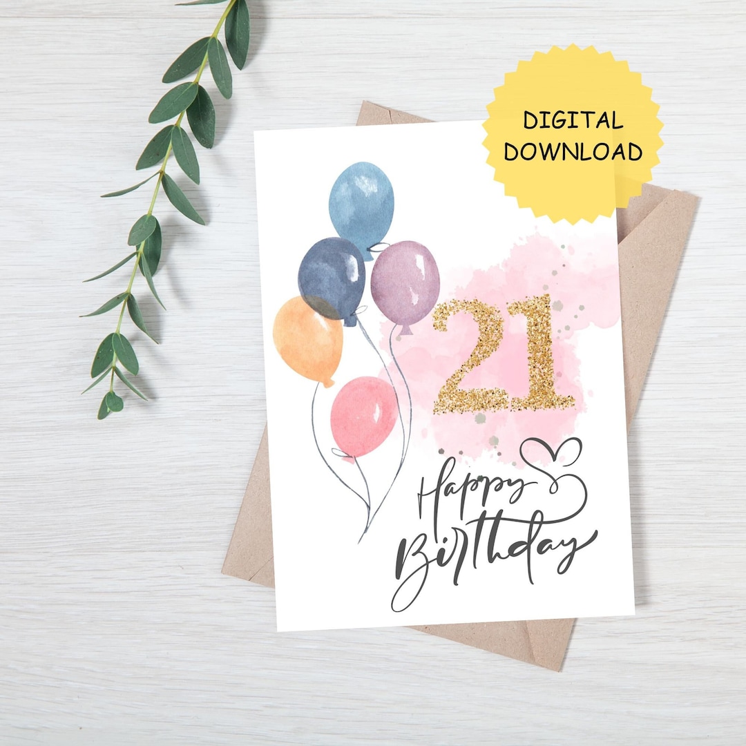 Custom Printable 21st Birthday Greeting Downloadable 21st Etsy