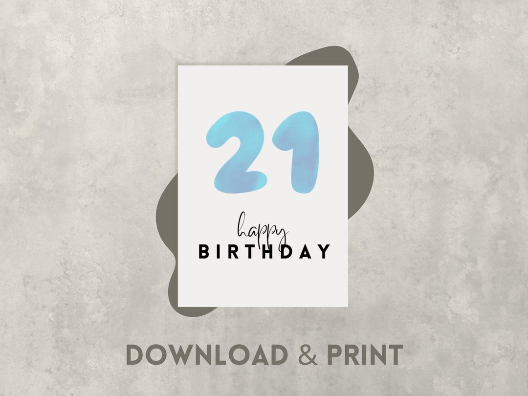 Printable 21st Birthday Card in Blue Happy Birthday 21 Etsy