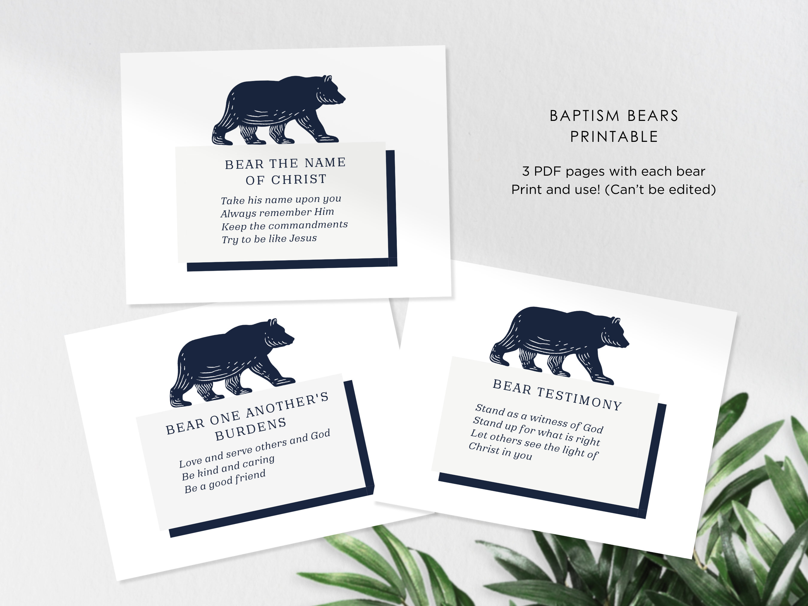Three Bears of Baptism Printable Kit: LDS Baptism Talk Tags Signs