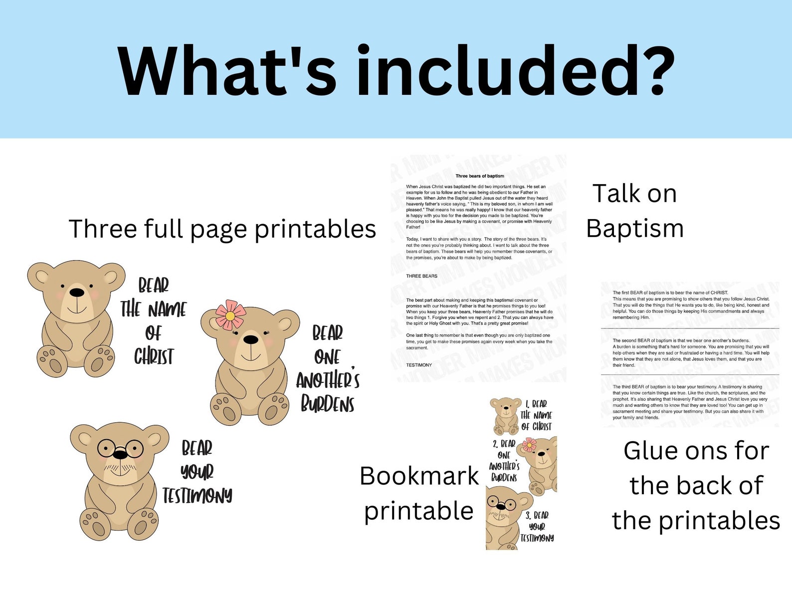 Three Bears of Baptism Printables and Talk LDS Baptism Talk Bear the