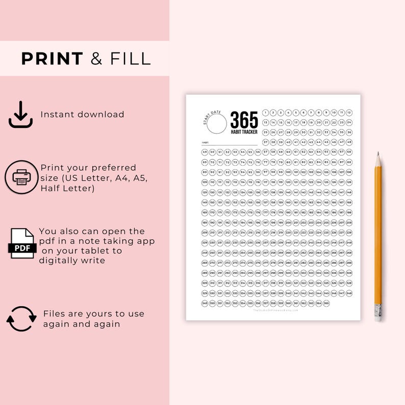 365 Habit Tracker Printable A4 A5 US Letter Half Letter Sizes Etsy