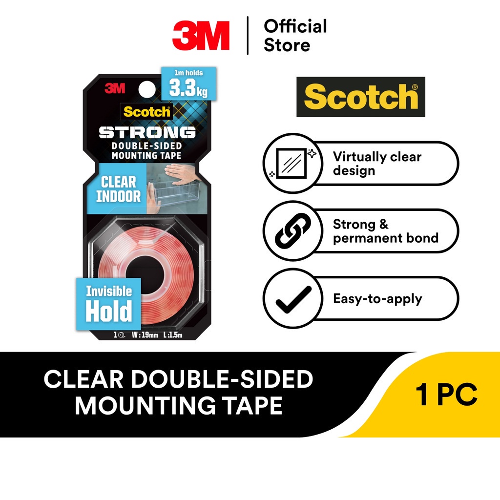 3M Scotch CLEAR Double Side Mounting Tape 19MM X 4M