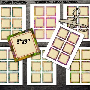 3x3 PRINTABLE Retro Floral Sticky Notes vintage Flowers Card Sheet