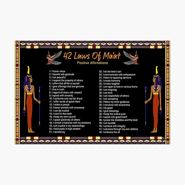 quot The 42 Laws Of Maat Positive Affirmations quot Photographic Print for