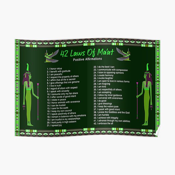quot The 42 Laws Of Maat Positive Affirmations quot Poster for Sale by