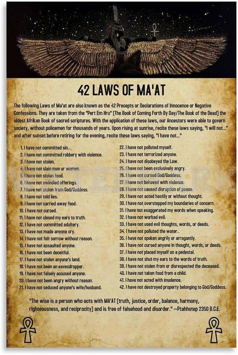Amazon com: BLUDUG 42 Laws Of Maat Poster Ancient Egyptian Culture