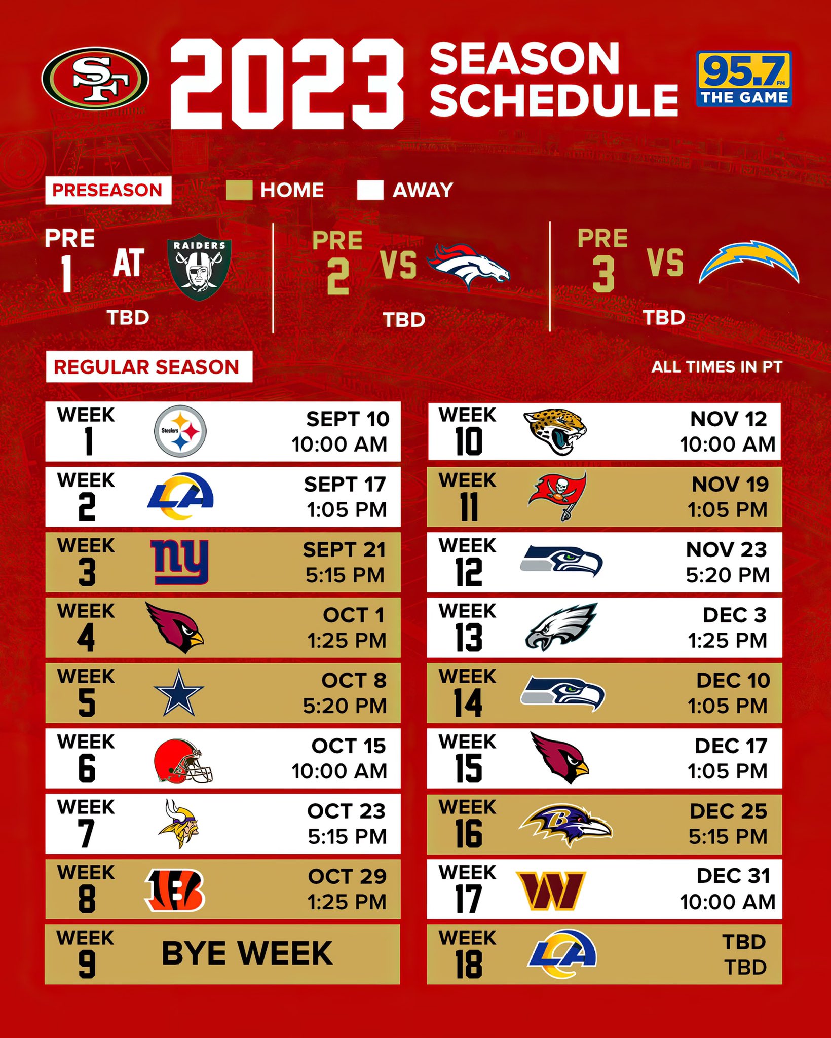 San Francisco 49ers 2025 schedule released with dates kickoff times