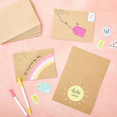 50 Pack Blank A7 Kraft Paper Cards and Envelopes All Occasion 5x7 Note