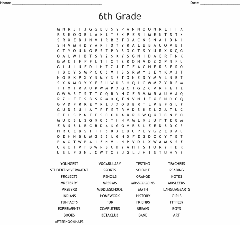 6Th Grade Word Search Printable Printable Calendars AT A GLANCE