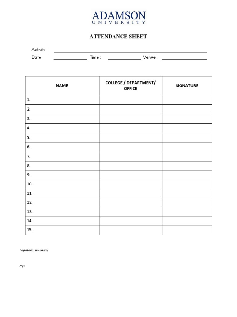 Attendance Sheet PDF