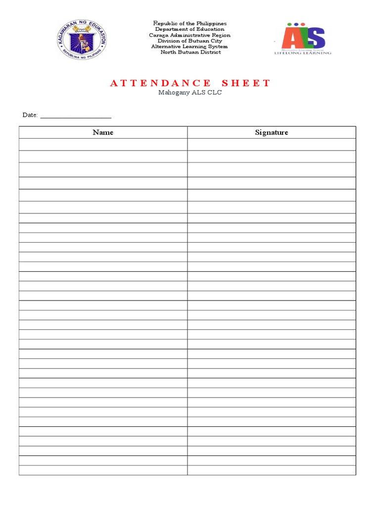 Attendance Sheet: Name Signature PDF