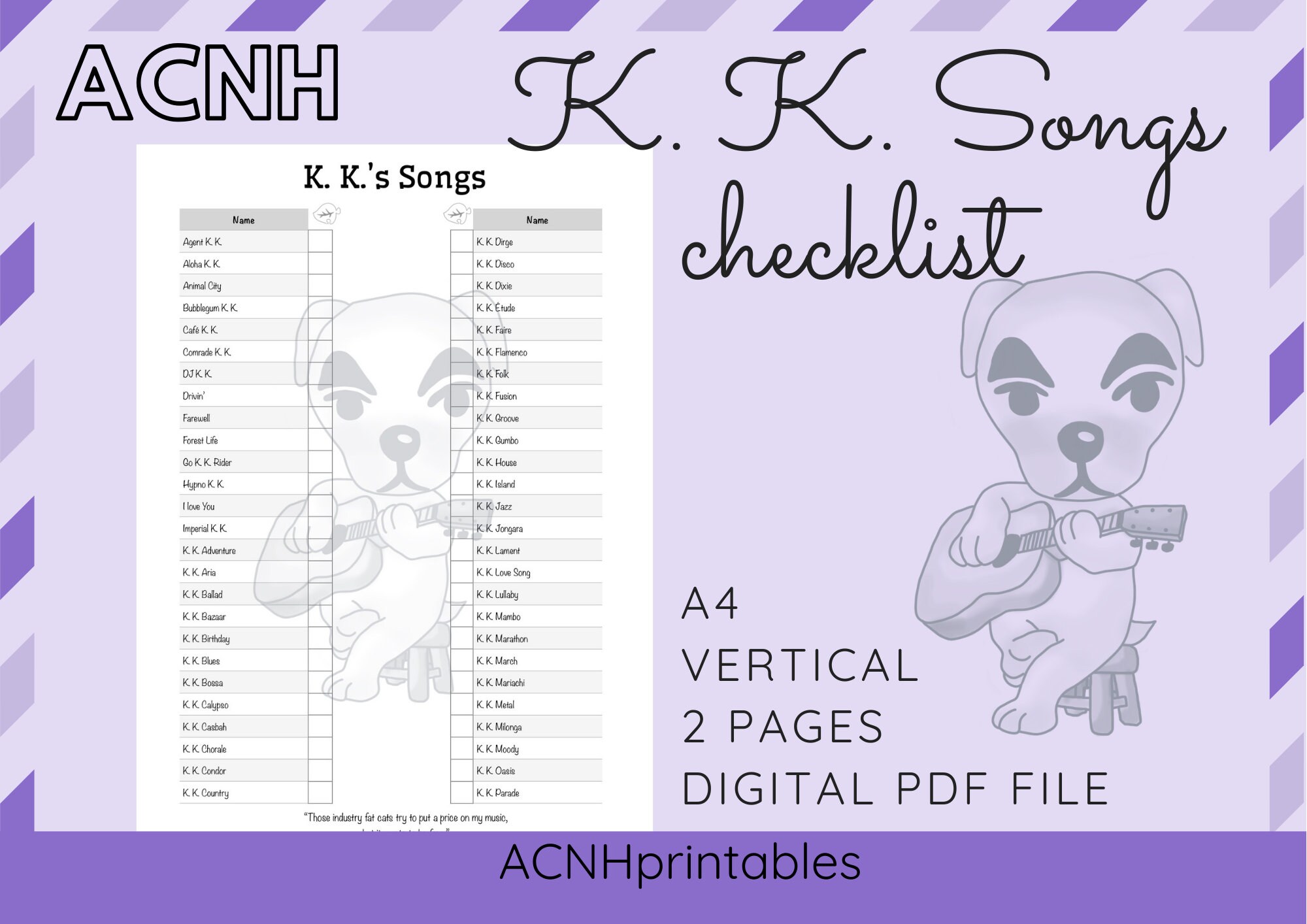 ACNH Printable K K Songs Checklist / Instant Download / A4 / Etsy