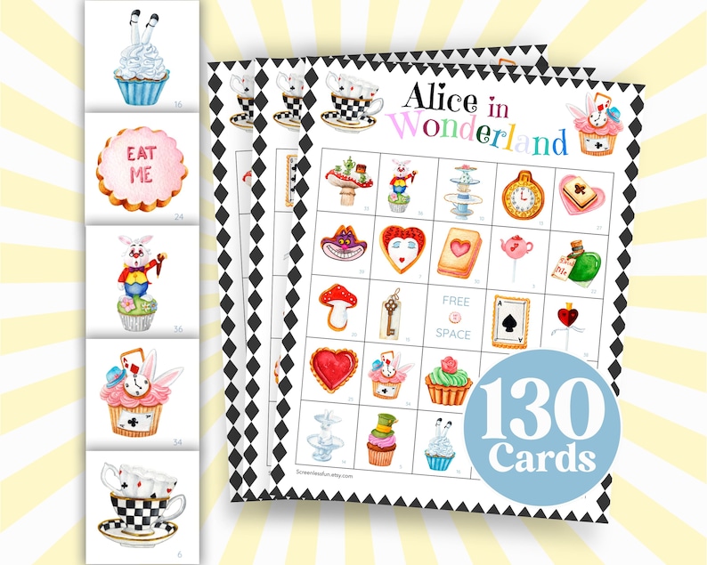 Alice in Wonderland Bingo Game: Mad Hatter Tea Party (printable) Etsy