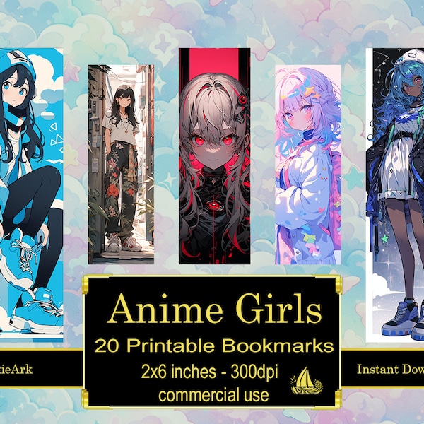 Printable Anime Bookmarks Cartoon Anime Illustrated Instant Download