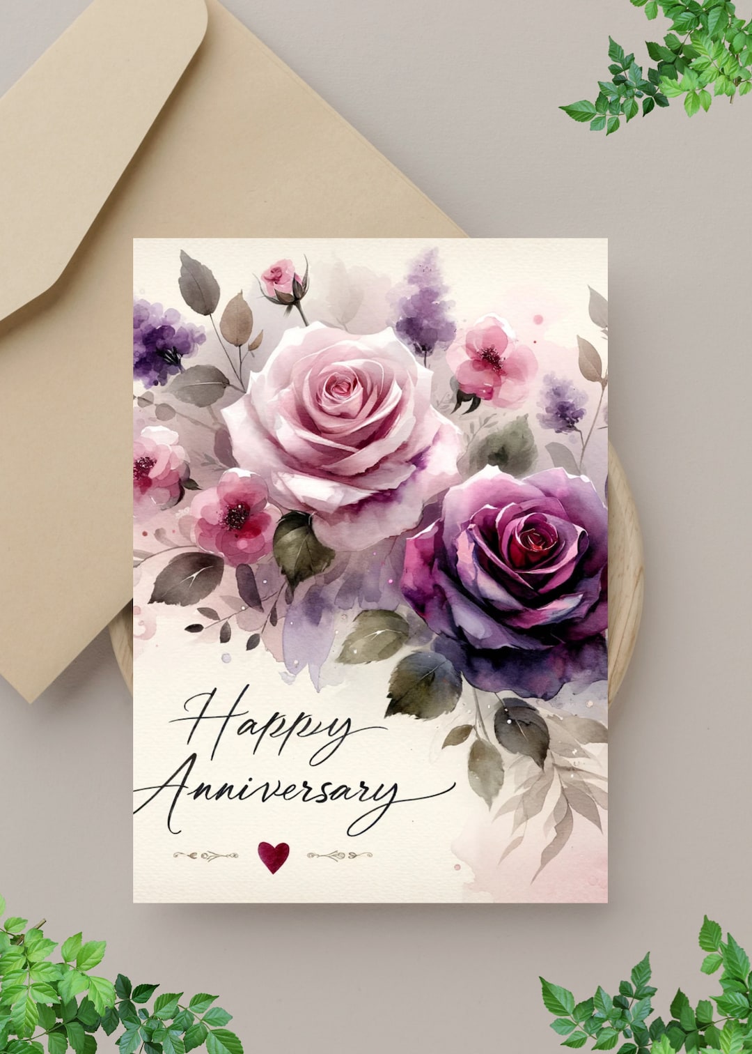 Printable Anniversary Card W/ Flowers L Digital Download L 5x7 L Blank