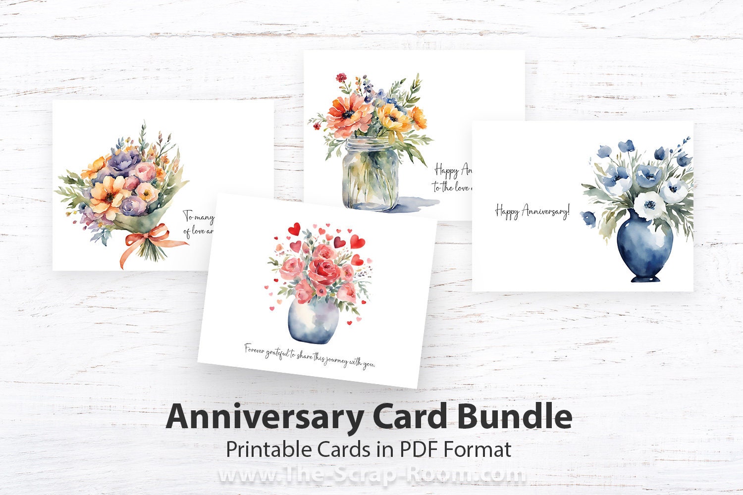 Printable Anniversary Card Bundle: PDF Card Floral Anniversary Card