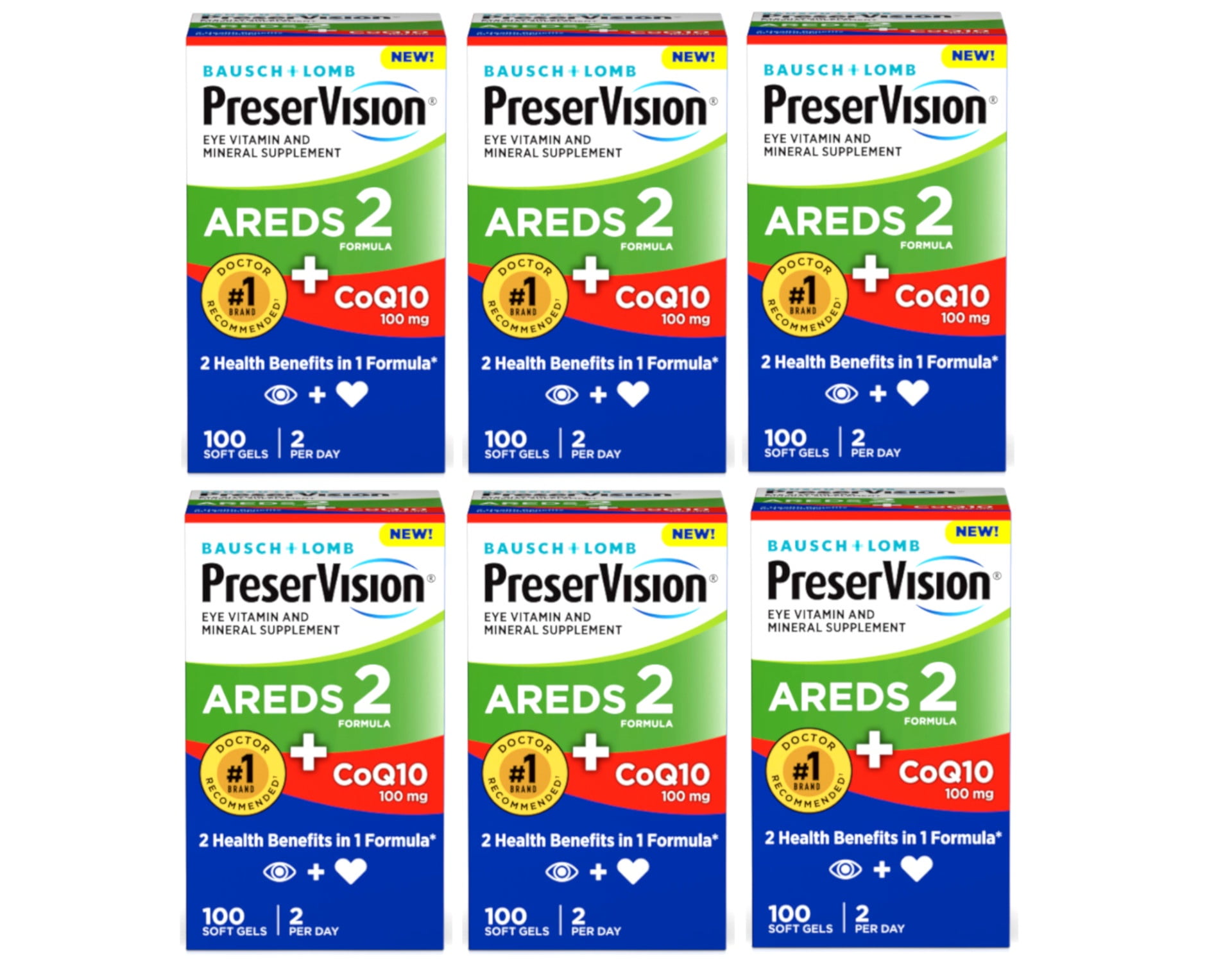 6 Pack PreserVision AREDS 2 Eye Vitamins with CoQ10 for Heart Health