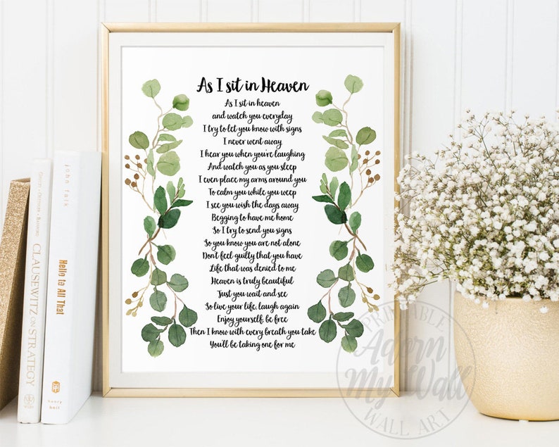 As I Sit in Heaven Printable Poem in Loving Memory Wall Art
