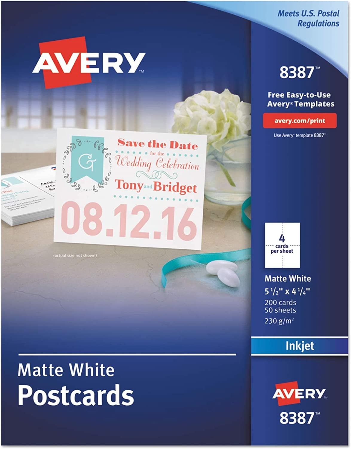 Avery Printable Cards Inkjet Printers 200 Cards 4 25 x 5 5 U S