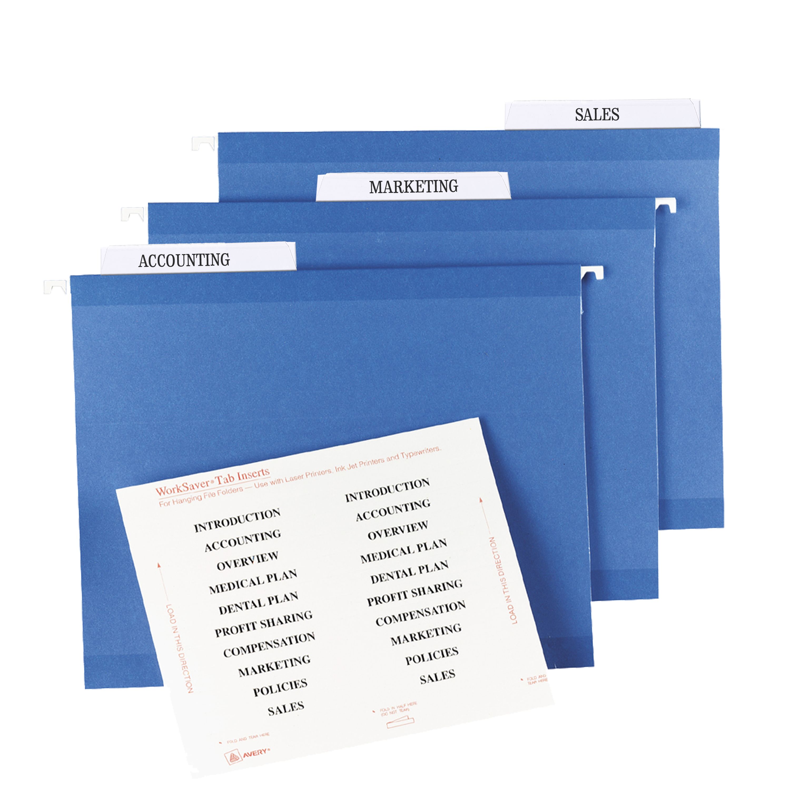 Avery 11136 WorkSaver Printable Tab Inserts for 1/5 Cut Hanging Folders