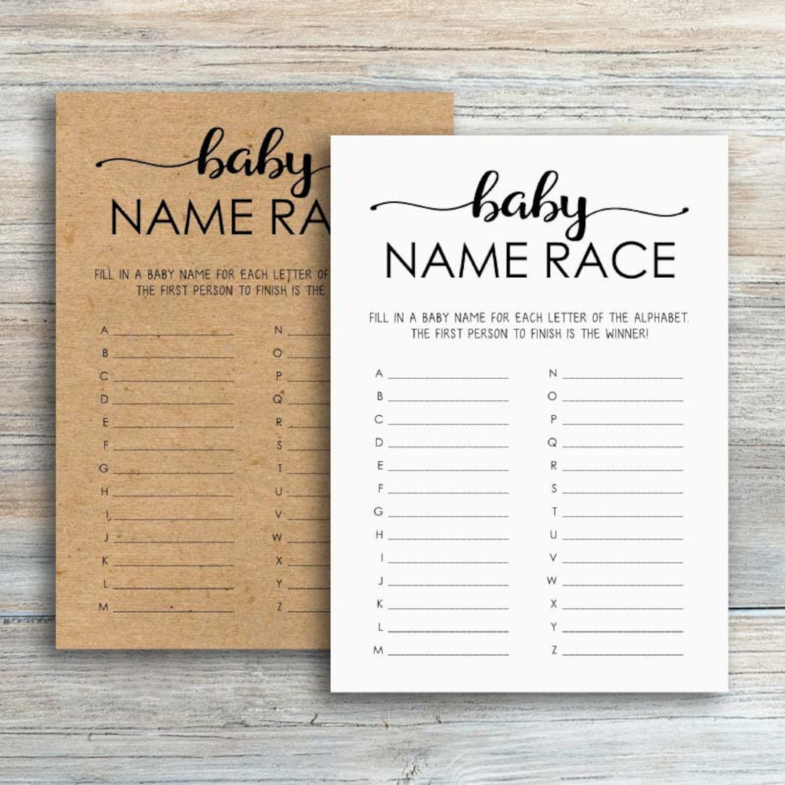 Baby Name Race Game Printable Baby Shower Games Alphabet Etsy