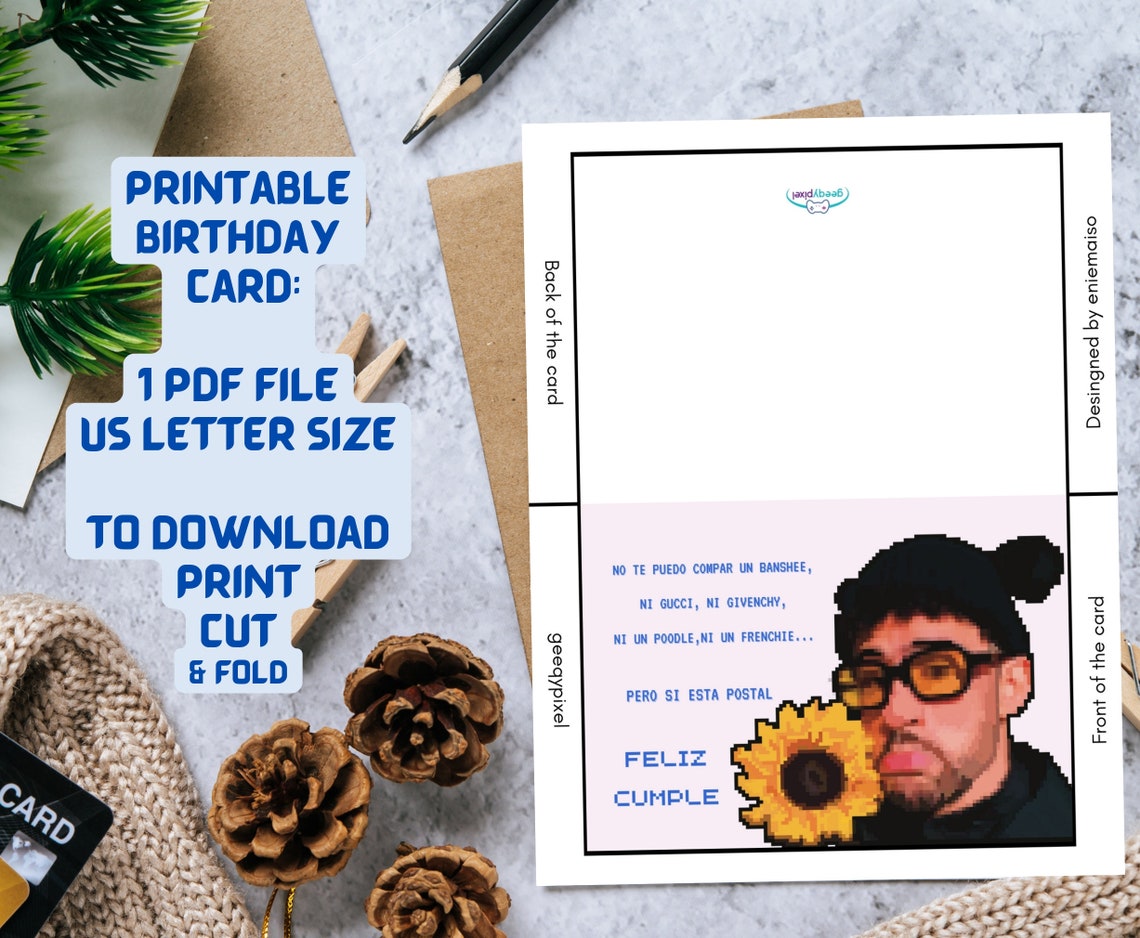 Bad bunny birthday card yhlqmdlg bad bunny feliz etsy Artofit
