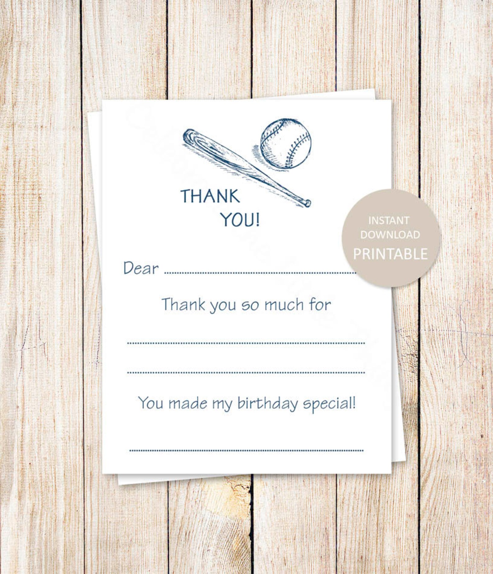 Printable Baseball Thank You Cards: Fill in the blank (instant Download