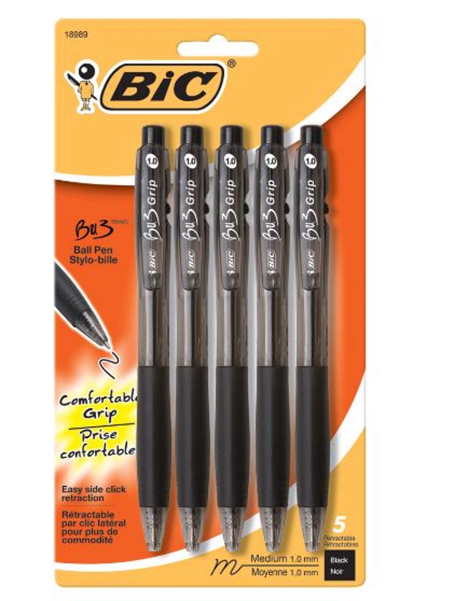 BIC BU3 Grip Retractable Ballpoint Pen Black 1 0mm 5Pk KVCC Bookstore