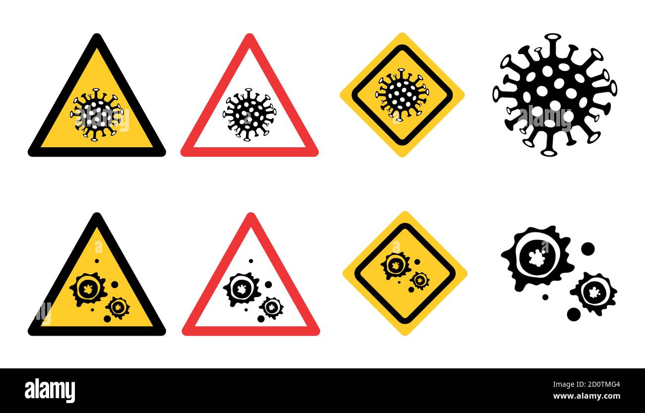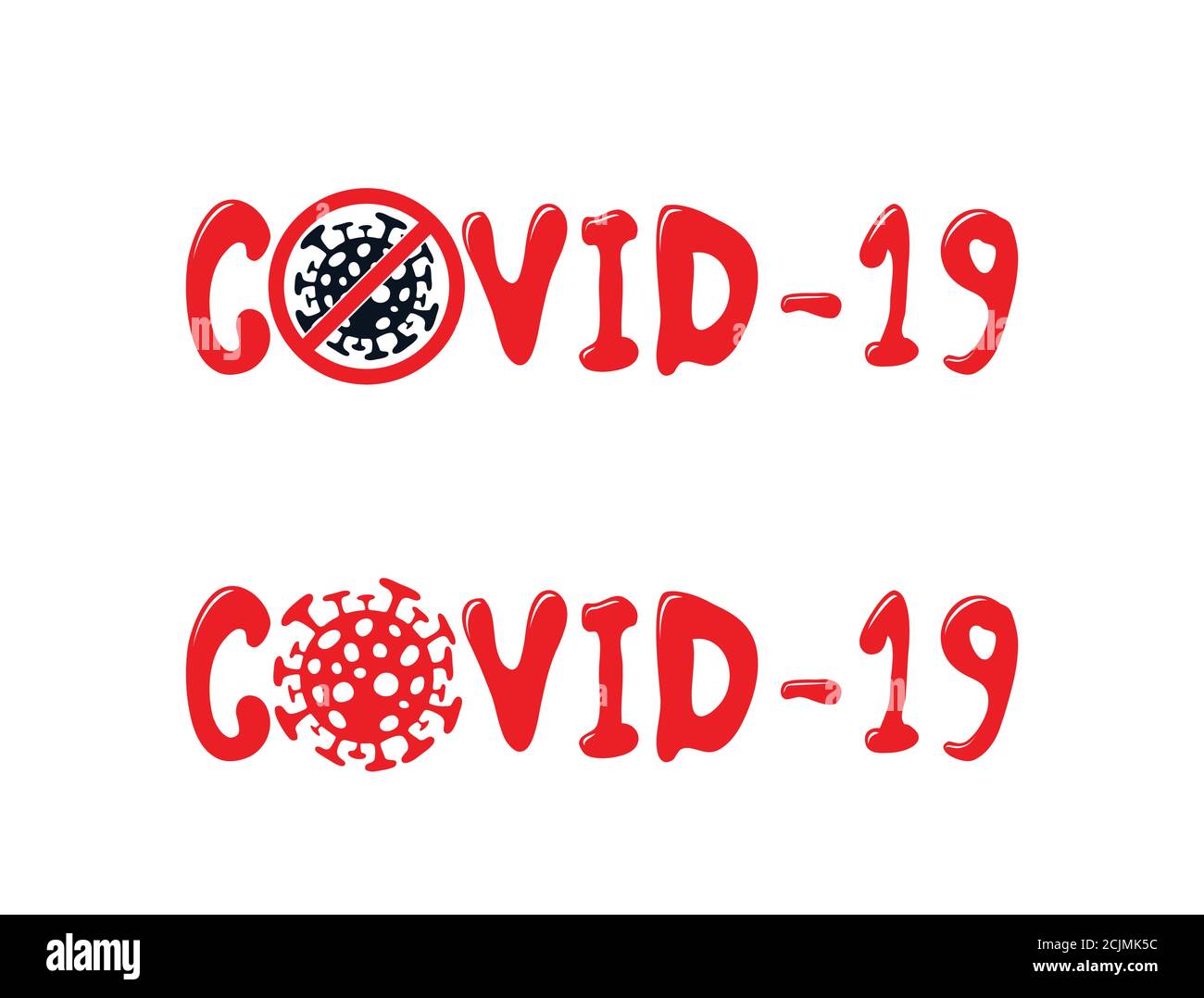 A set of two corona virus sign or what we call covid 19 sign in red and