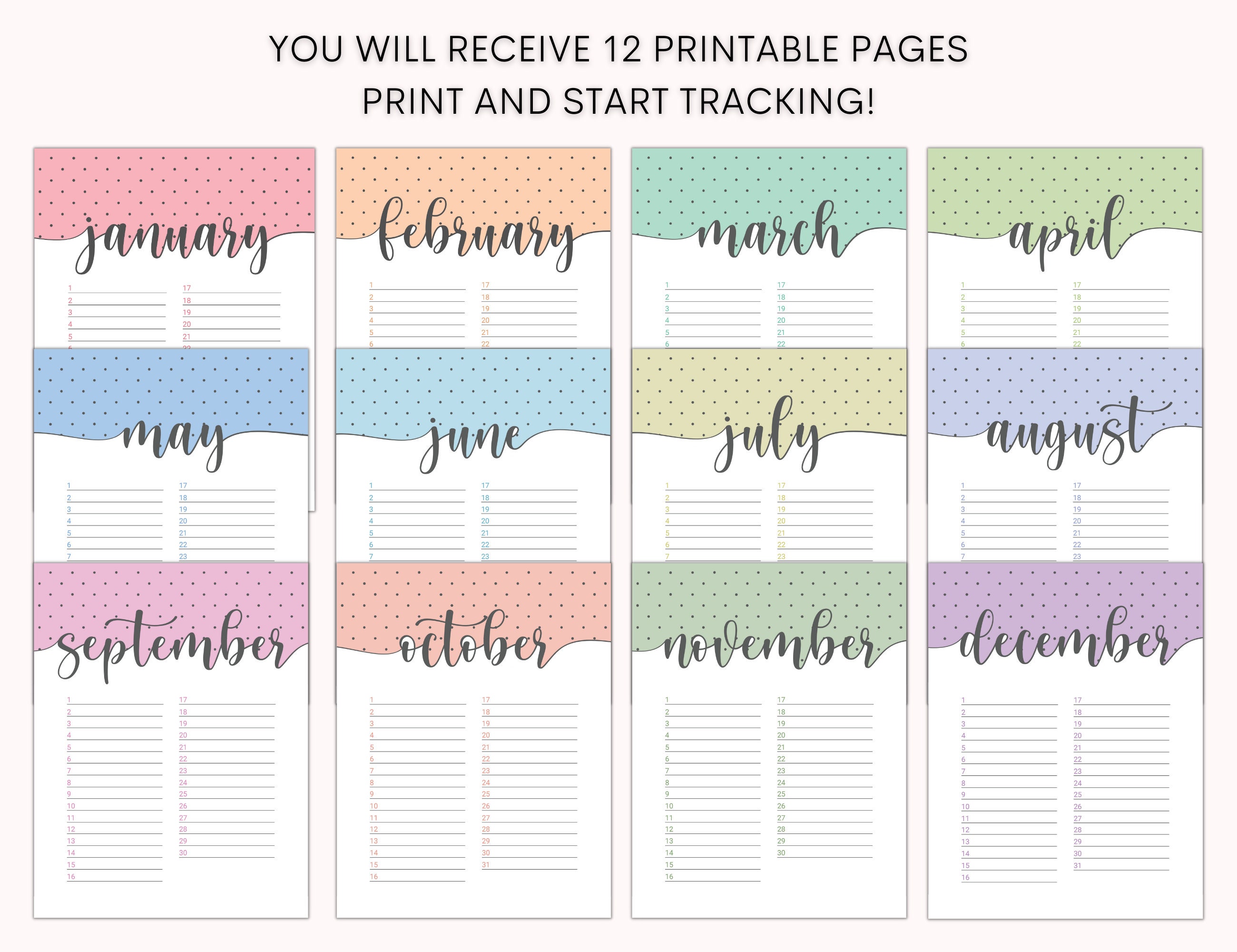 Editable Birthday Tracker Birthday Reminder Birthday Log Printable