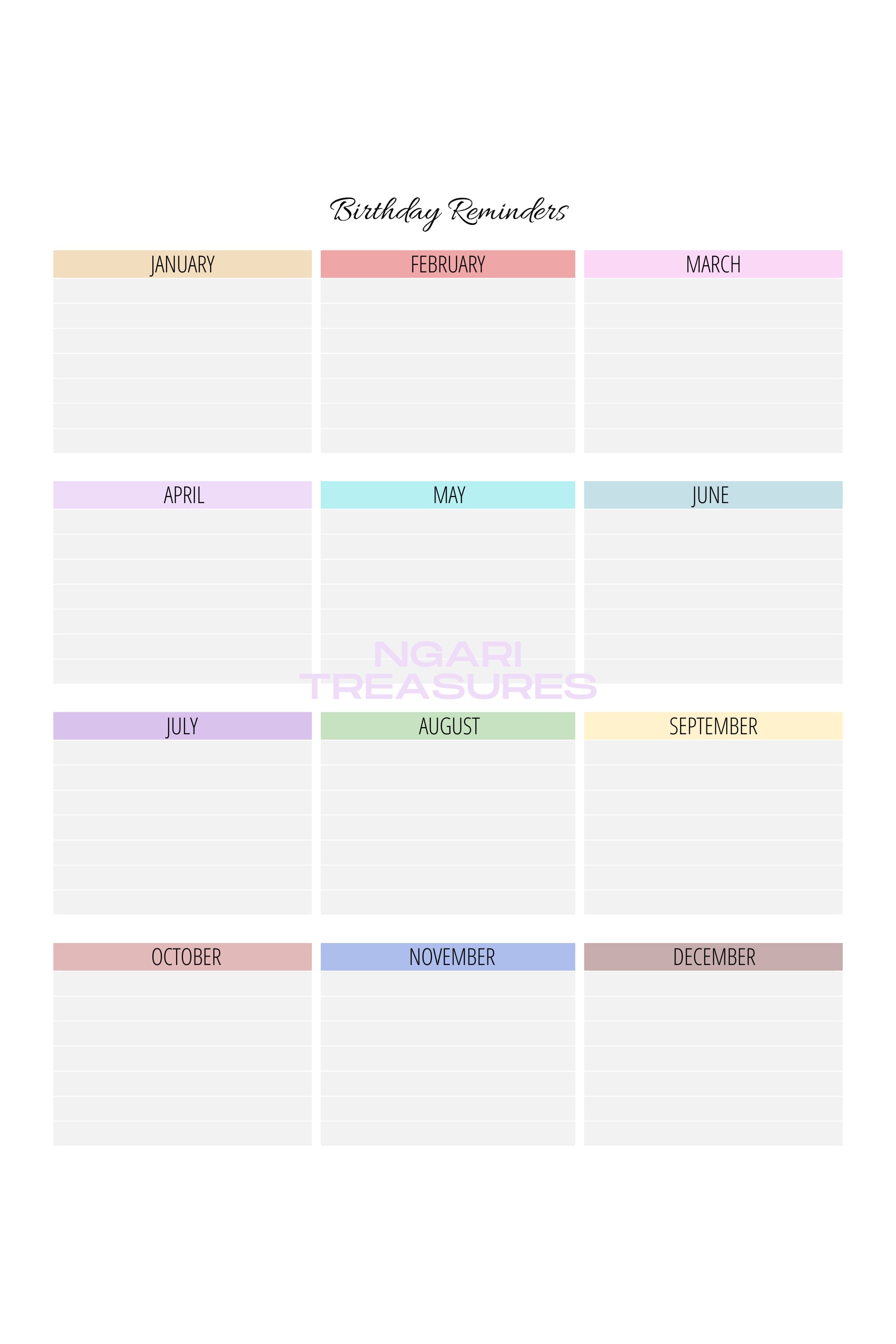 Birthday Tracker Birthday Reminder Birthday Log Instant Download Etsy