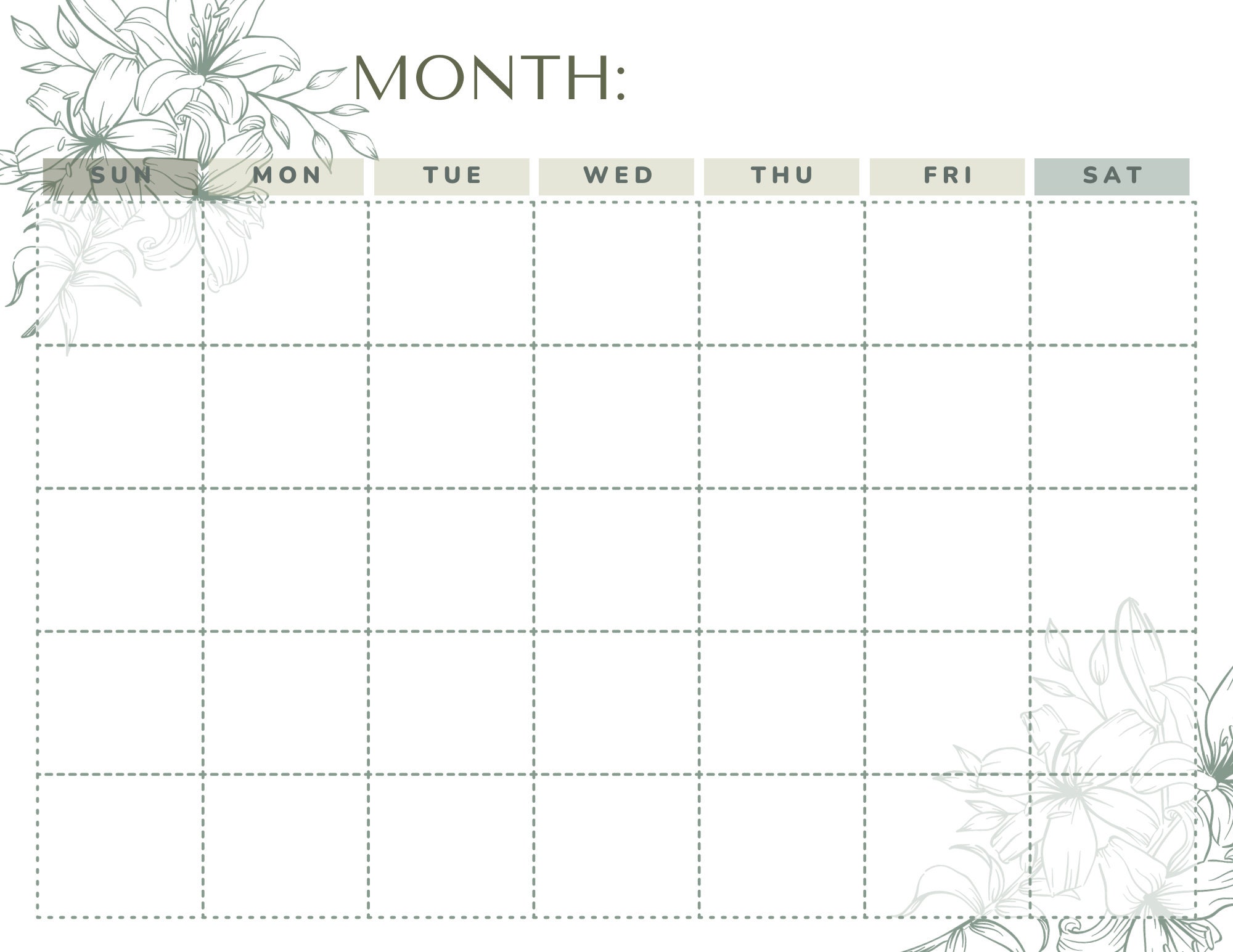 Blank Calender Template Blank Printable Calendar Digital Download Etsy