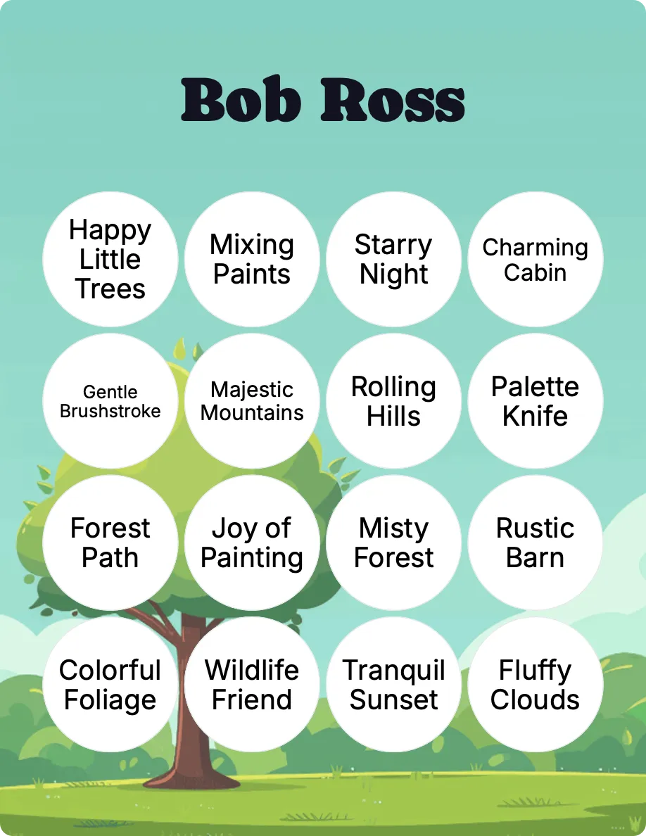 Bob Ross Bingo Cards WordMint