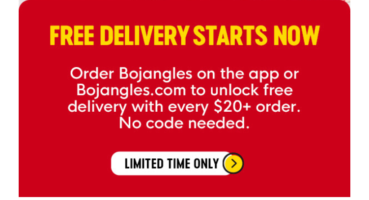 Bojangles Coupon Code: $5 Delivery when you order on the Bojangles a