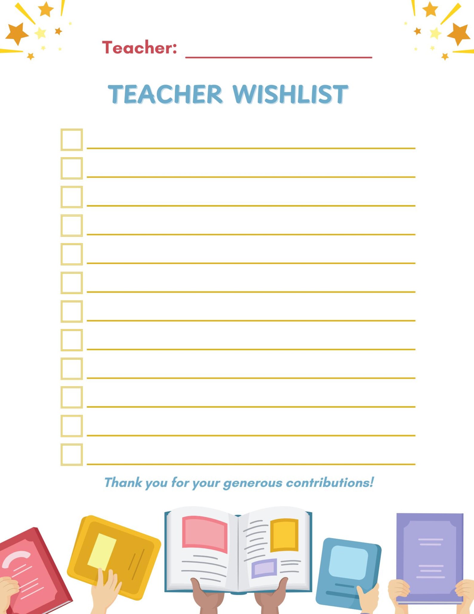 Book Fair Wish List for Teacher and Student Wish List Printable by