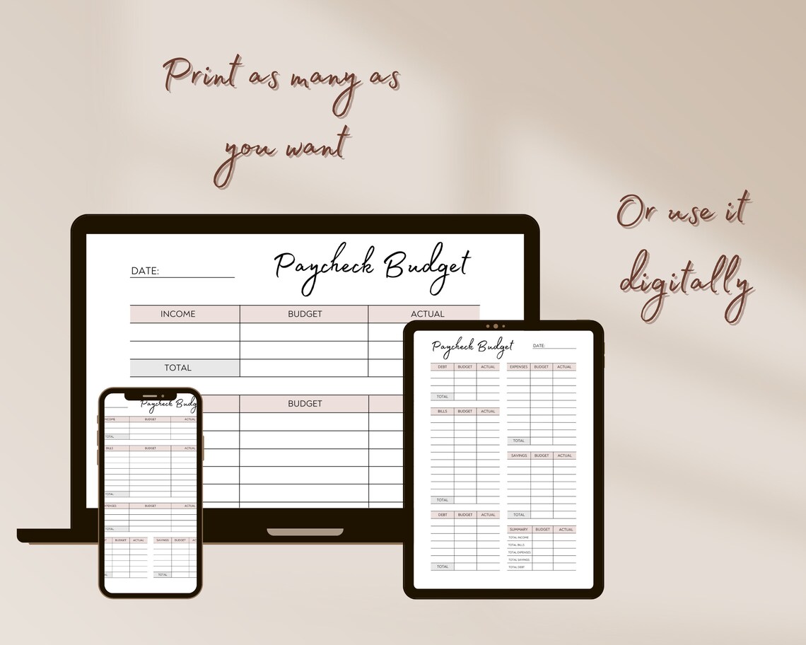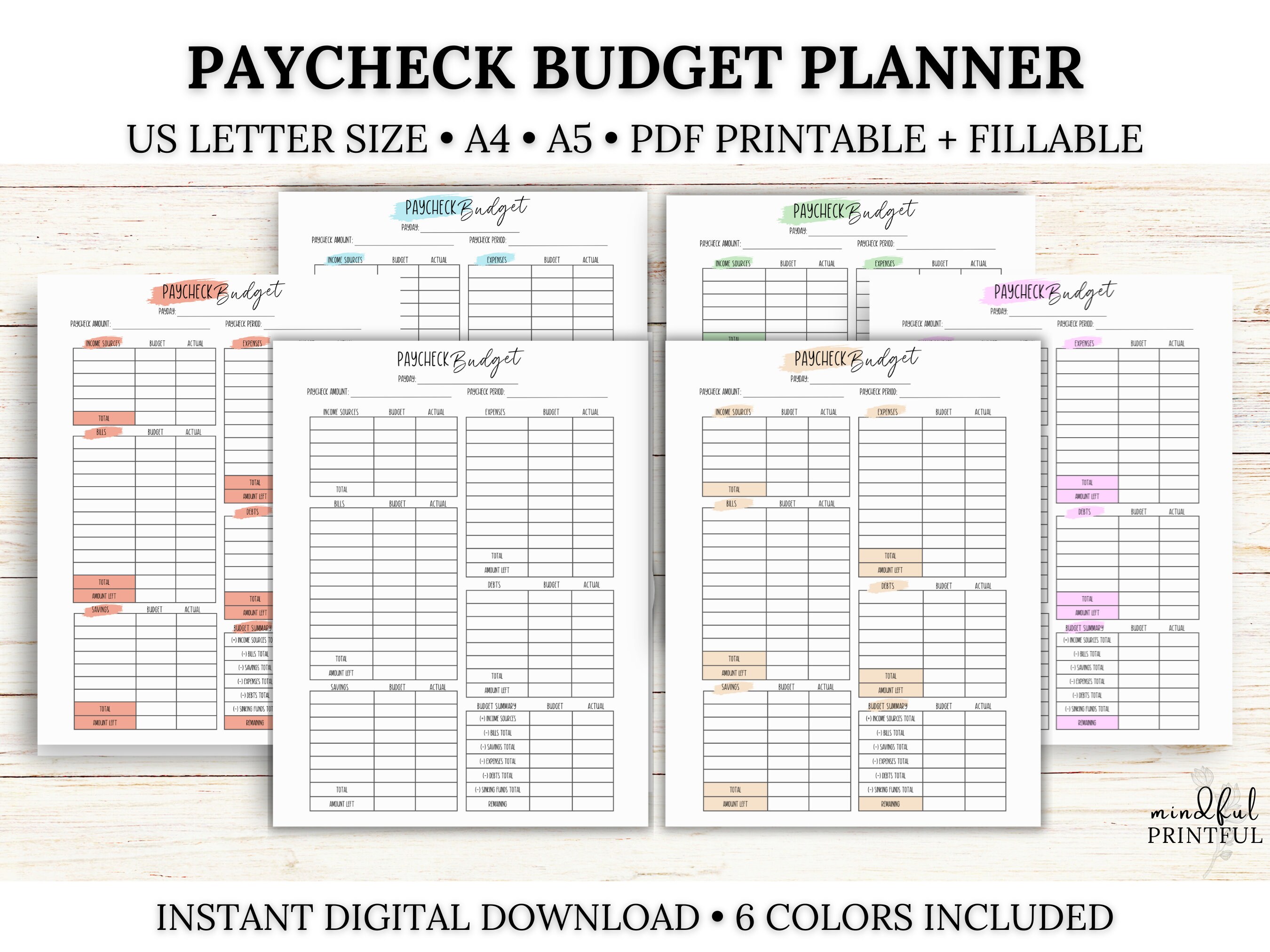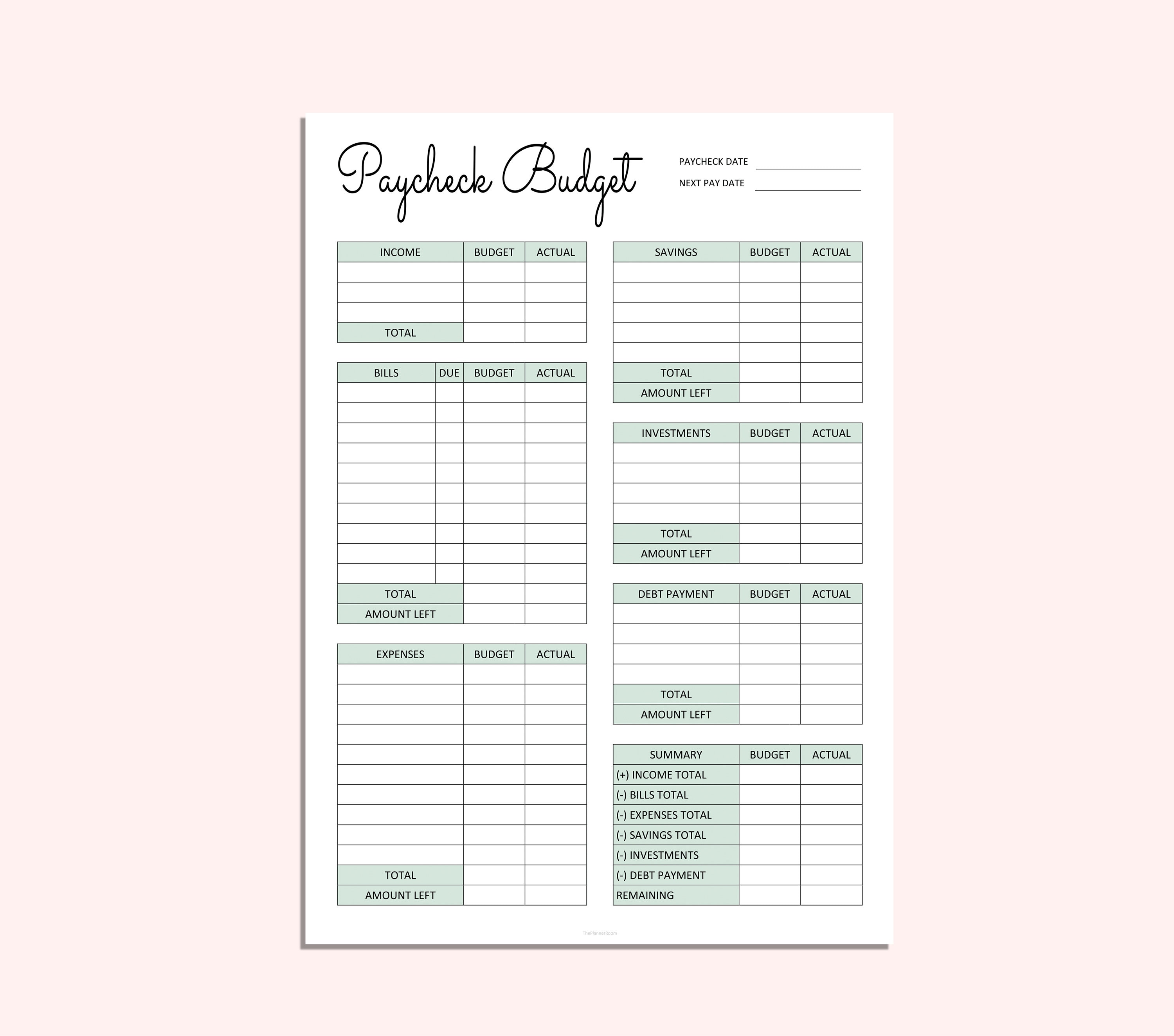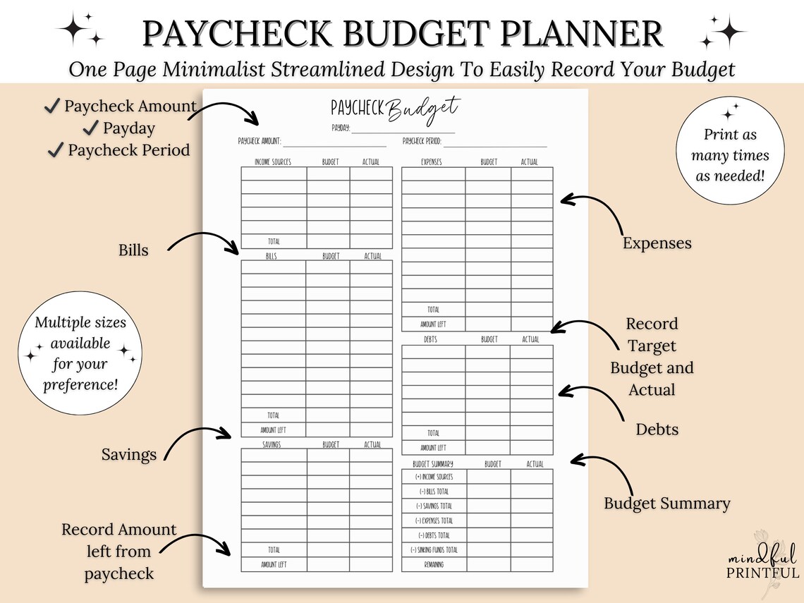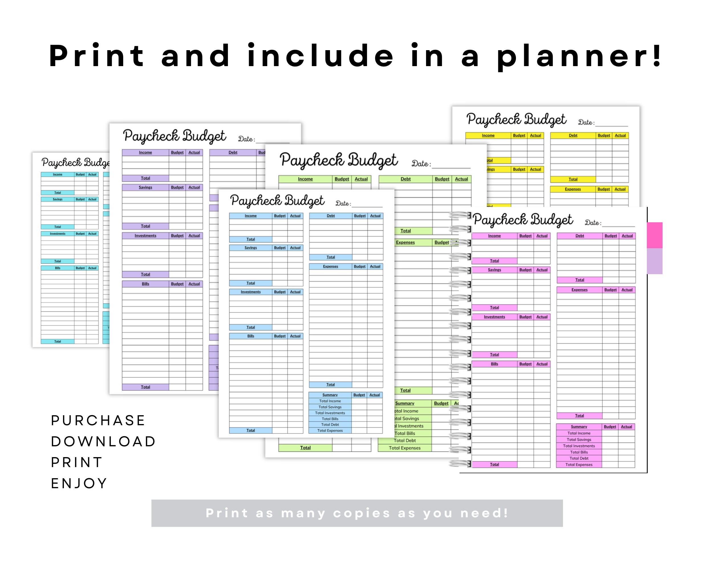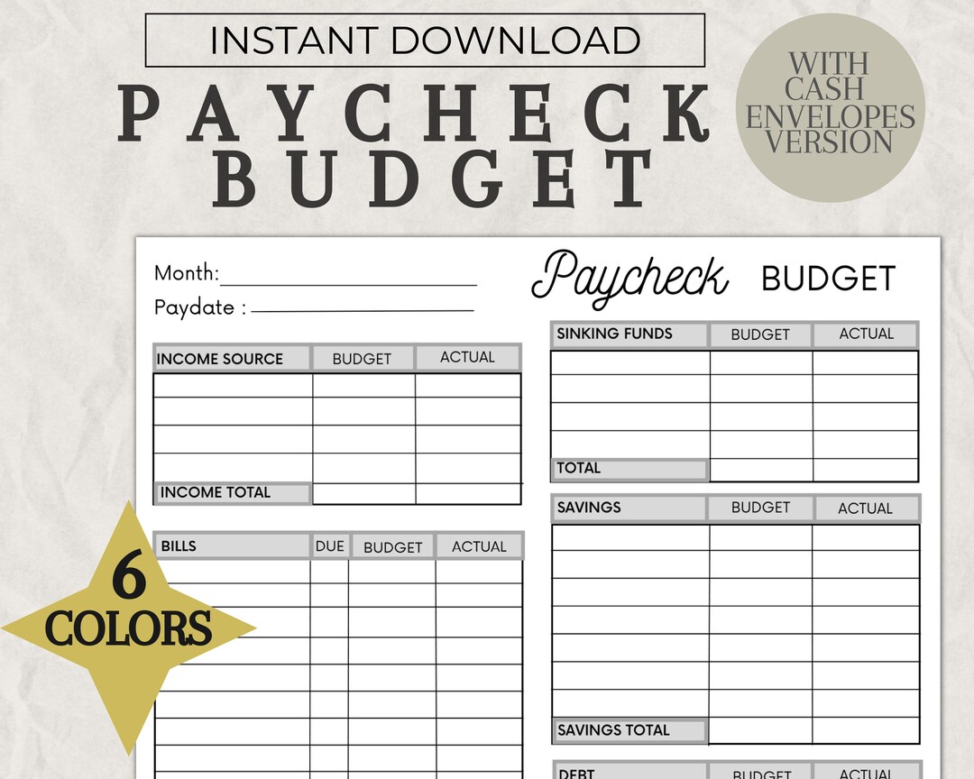 PAYCHECK BUDGET PLANNER Printable Digital Download Paycheck Planner