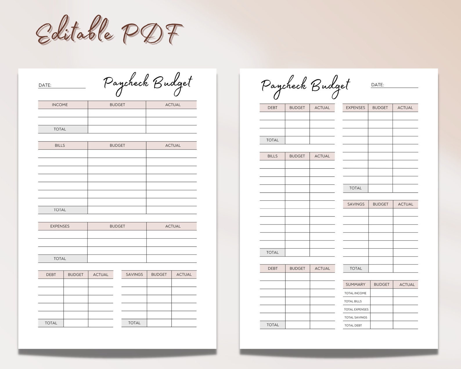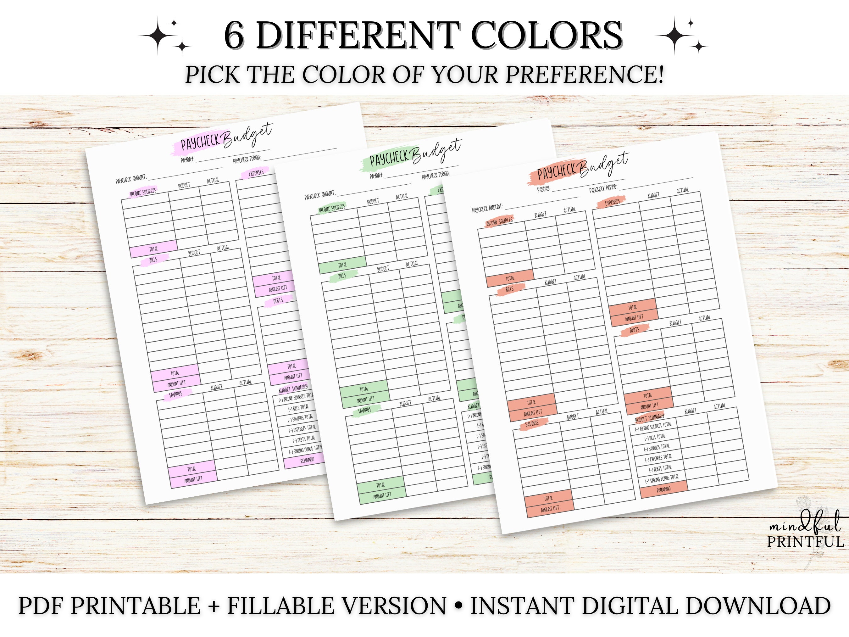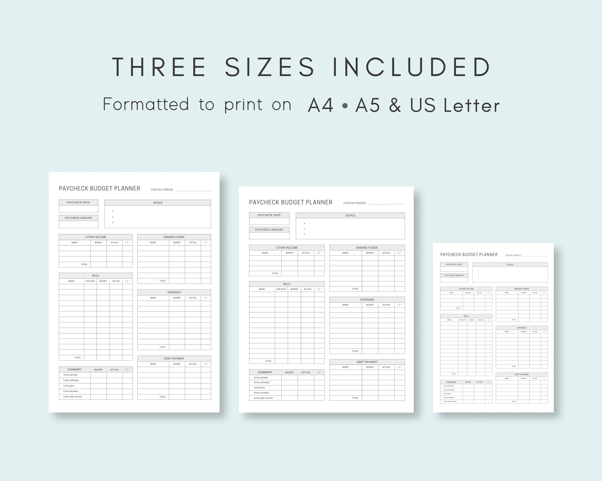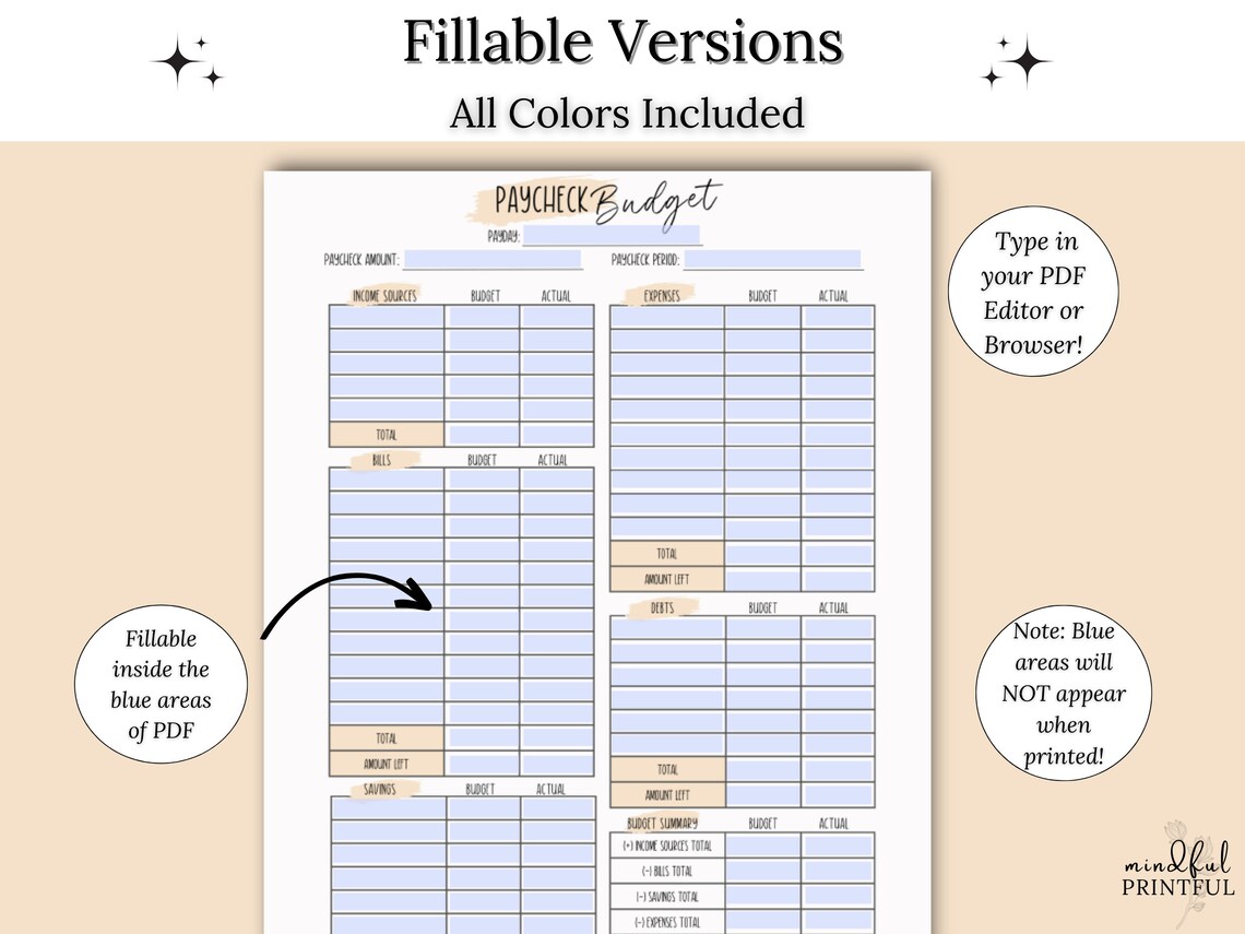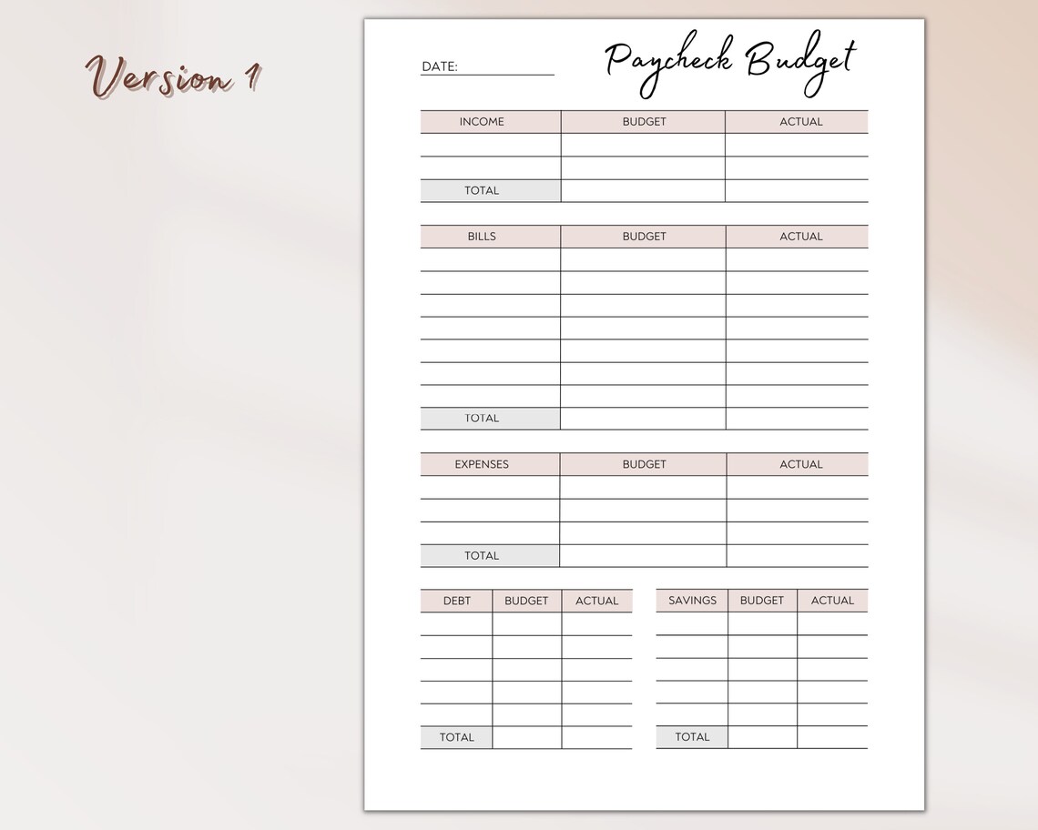 PAYCHECK BUDGET PLANNER Printable Digital Download Paycheck Planner