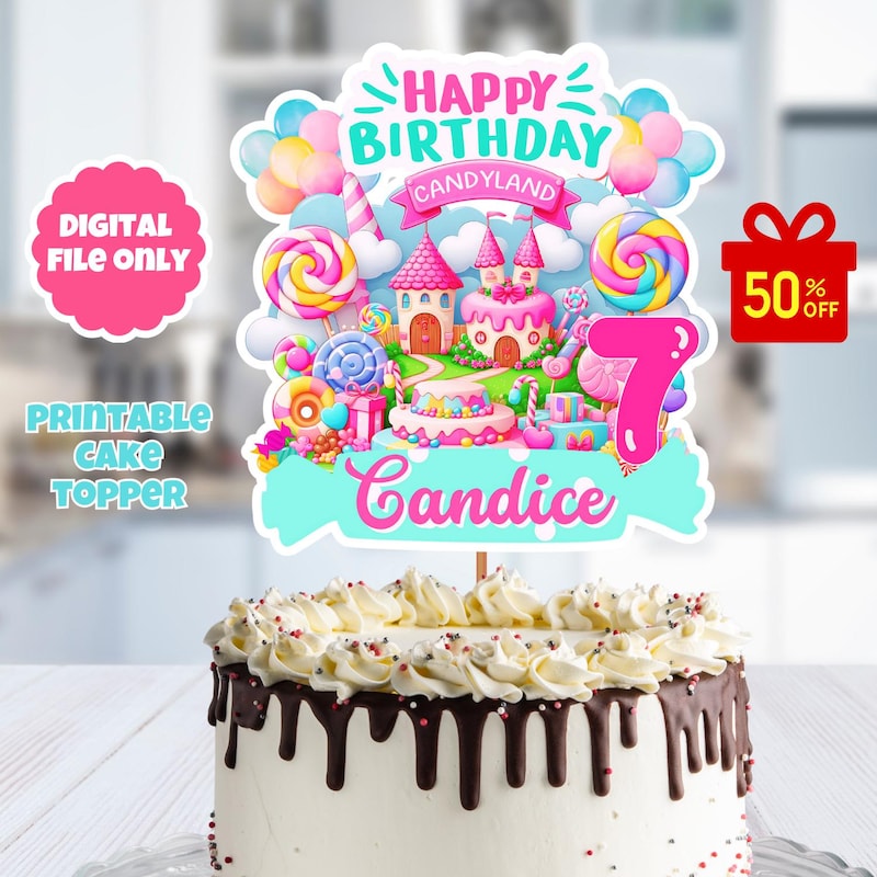 Candyland Birthday Cake Topper Printable Candy Theme Decoration