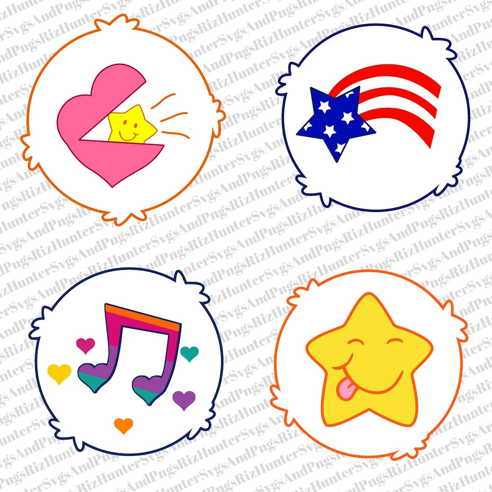 Care Bear SVG Bundle Care Bears Clipart Care Bears Belly Badges Care